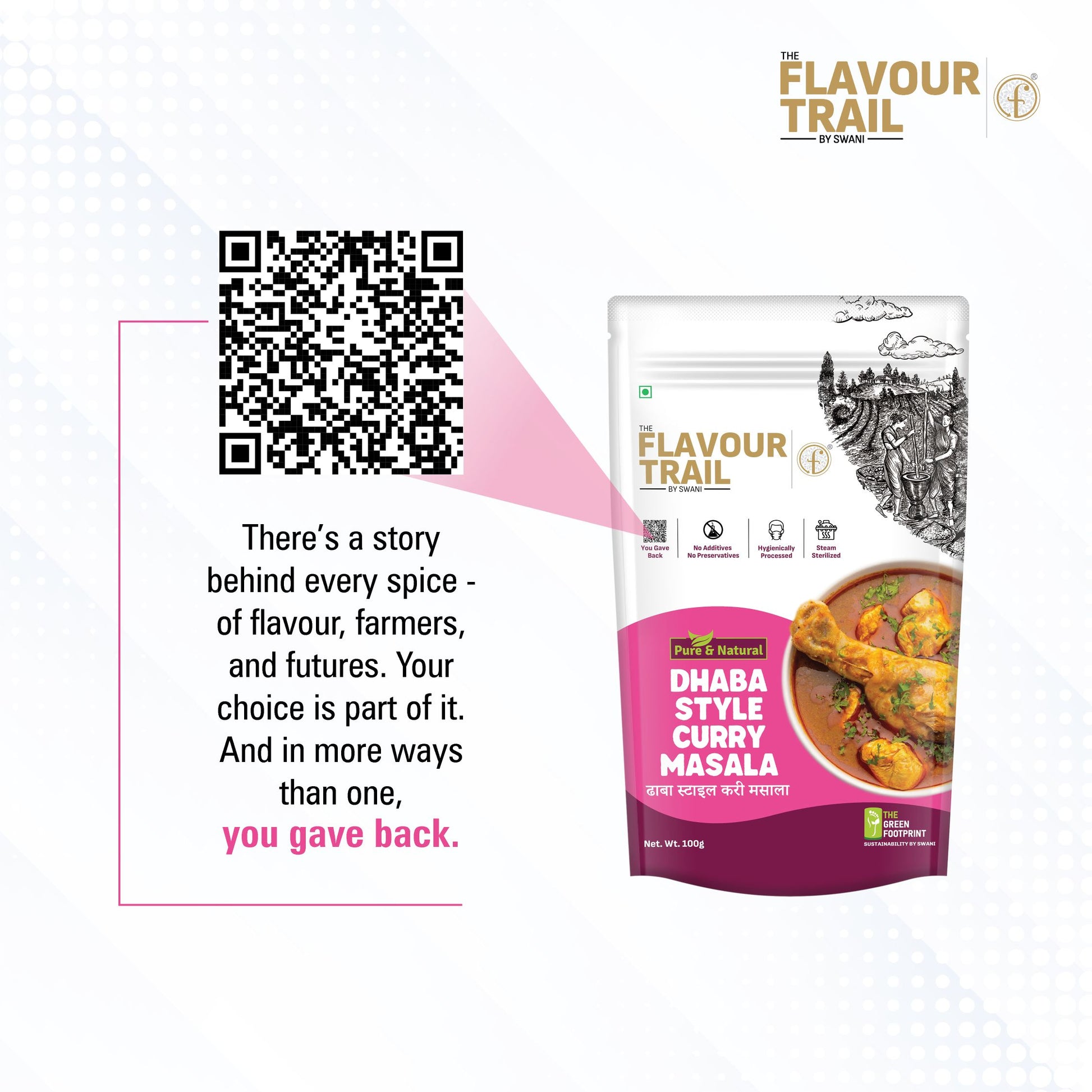 You know him - the dhaba chef with the stained apron, the loud laugh, and the secret spice mix. We stole his thunder (and maybe his masala) so you could stir up that roadside brilliance at home. This masala brings that same magic - thick, spicy, soul-hugging curry that clings to chicken like gossip in a tea stall. Ingredients :Â Mixed Spices (Red Chilli, Cardamom, Coriander, Chat Masala, Amchur, Cumin, Ginger, Turmeric), Iodized Salt, Maltodextrin, Edible Vegetable Oil (Soyabean Oil), Dehydrated Vegetable Powder (Garlic, Fenugreek Leaf), Spice Extracts, Flavour Enhancer (INS 627, INS 631), Natural Food Color (INS 100(i)), Anticaking Agent (INS 551). Allergen Info: May Contain Wheat, Oats, Barley, Soy and Milk.